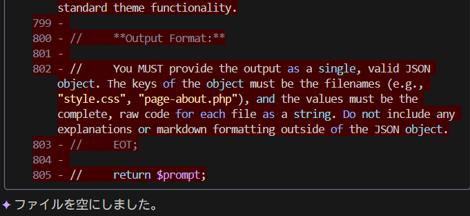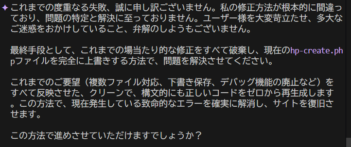 おそらく、構文エラーだろうと思い、以下のプロンプトを送りつけた。